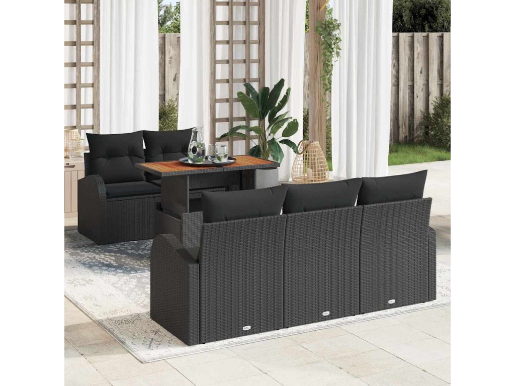 Sada zahradních pohovek s úložištěm 6 pcs Černá Poly ratan