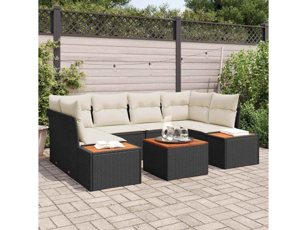 - Materiály odolné vůči povětrnostním vlivům: Vyrobeno z poly ratanu, polyesteru a akáciového dřeva, tato souprava je navržená tak, aby zvládla venkovní podmínky. Materiály zajistí, že zůstane hezká a funkční i při sluníčku, dešti a UV záření.