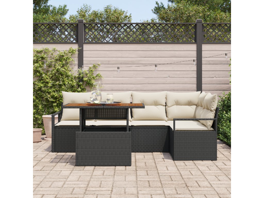 Zahradní jídelní souprava s polštářem 6 pcs Černá a krémová