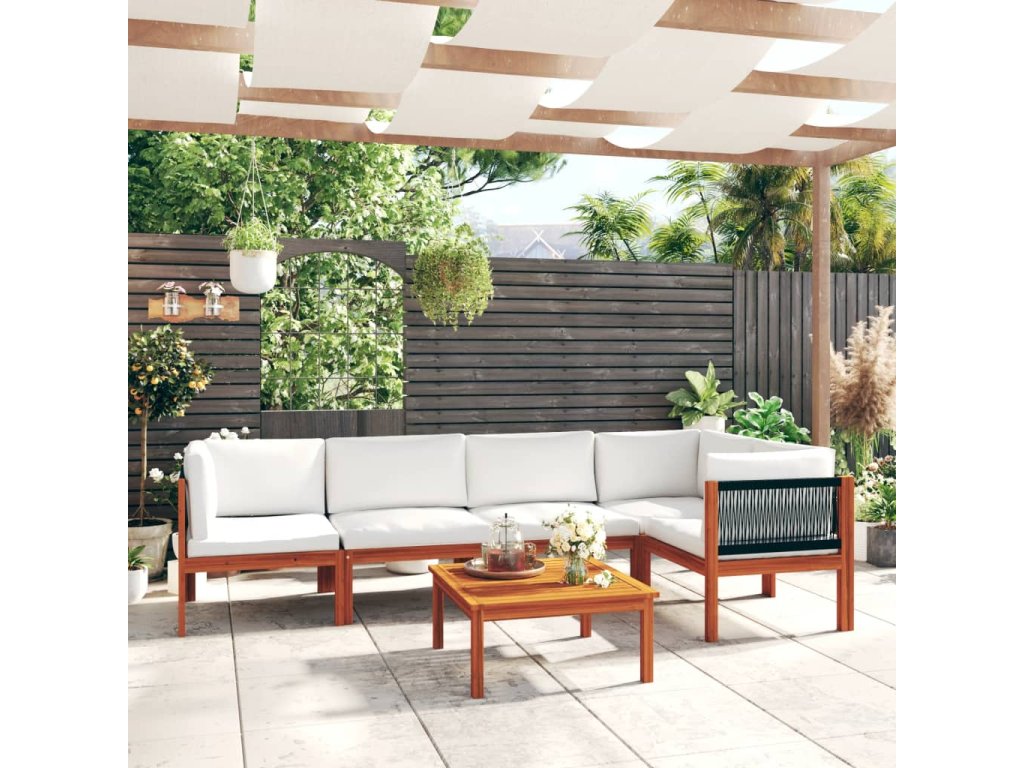 Zahradní pohovka se vyznačuje propracovanými lanovými opěradly, která dodávají sofistikovaný nádech každému venkovnímu prostoru. Tato zahradní sedací souprava je vyrobena z masivního akáciového dřeva, tropického tvrdého dřeva, které je odolné vůči povětrnostním vlivům a velmi trvanlivé. Díky olejové povrchové úpravě má sada zahradního nábytku teplou barvu a snadno se čistí a udržuje. Součástí balení jsou také sedáky a opěradla s tlustým polstrováním pro maximální pohodlí při odpočinku.