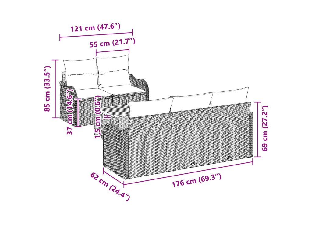 Sada zahradních pohovek 6 pcs Šedá Poly ratan