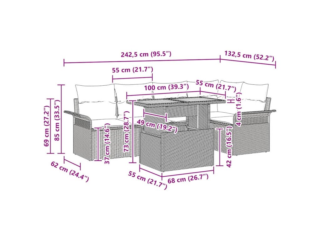 - Integrované úložné řešení Tento set má zabudované úložné prostory. Udržujte polštáře, deky nebo zahradní věci hezky uložené a snadno přístupné. To pomáhá udržet váš prostor uklizený a je to fakt praktické.