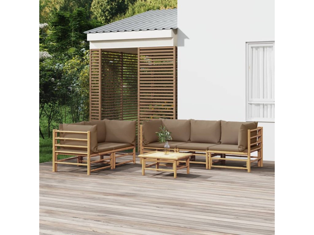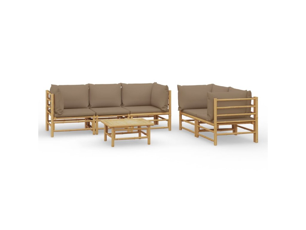 6dílná zahradní sedací souprava s taupe poduškami bambus