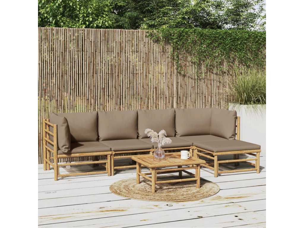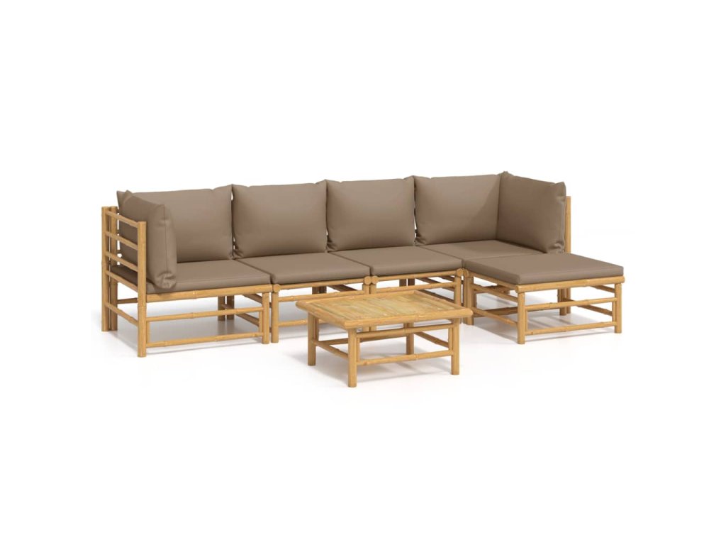 6dílná zahradní sedací souprava s taupe poduškami bambus