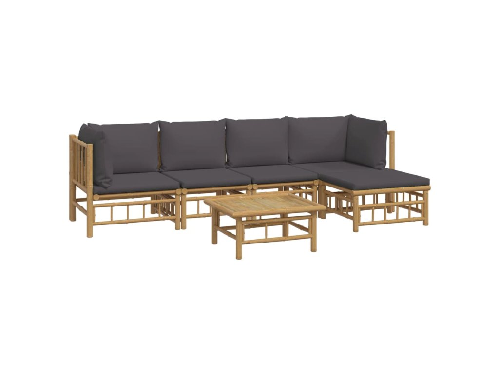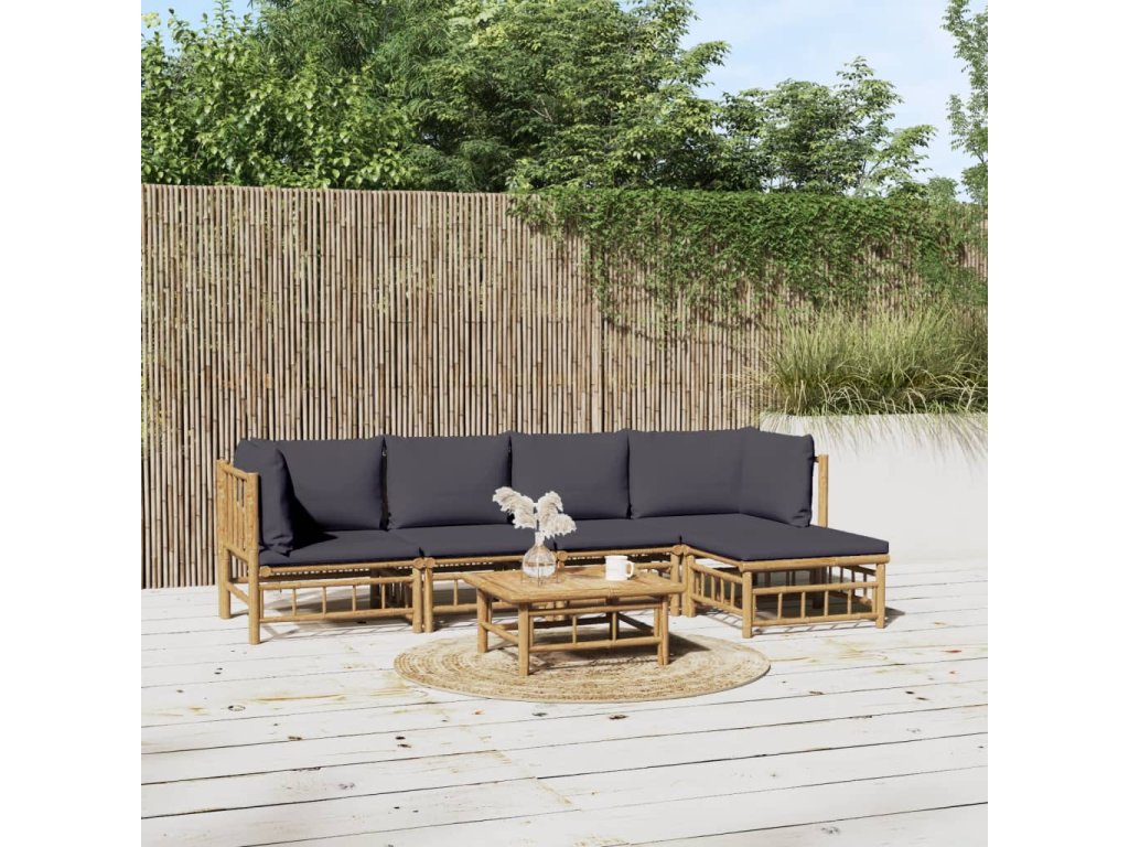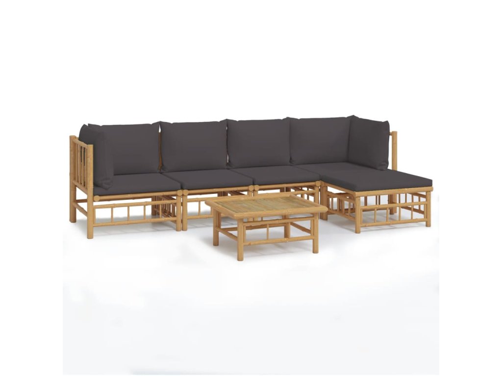 6dílná zahradní sedací souprava s tmavě šedými poduškami bambus