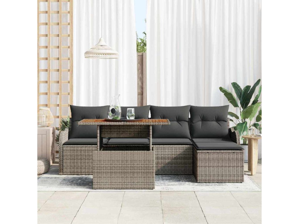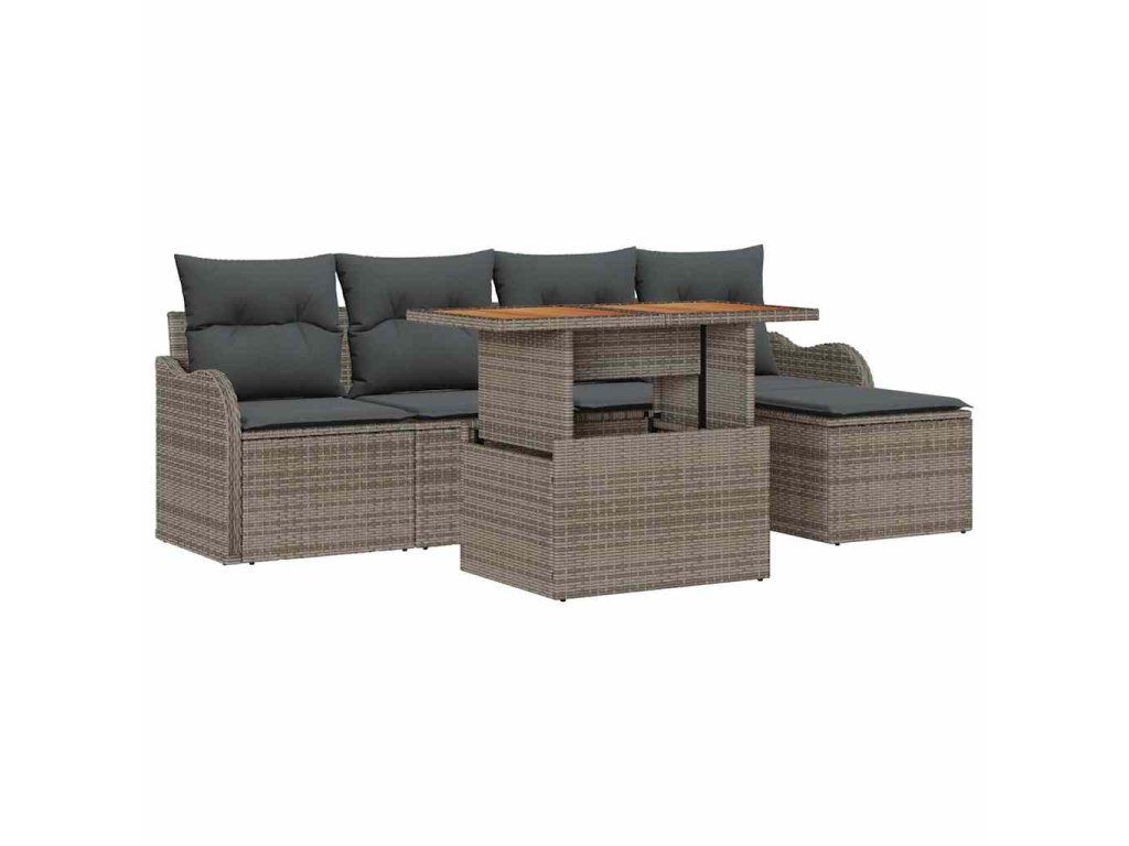 Sada zahradních pohovek s úložištěm 6 pcs Šedá Poly ratan
