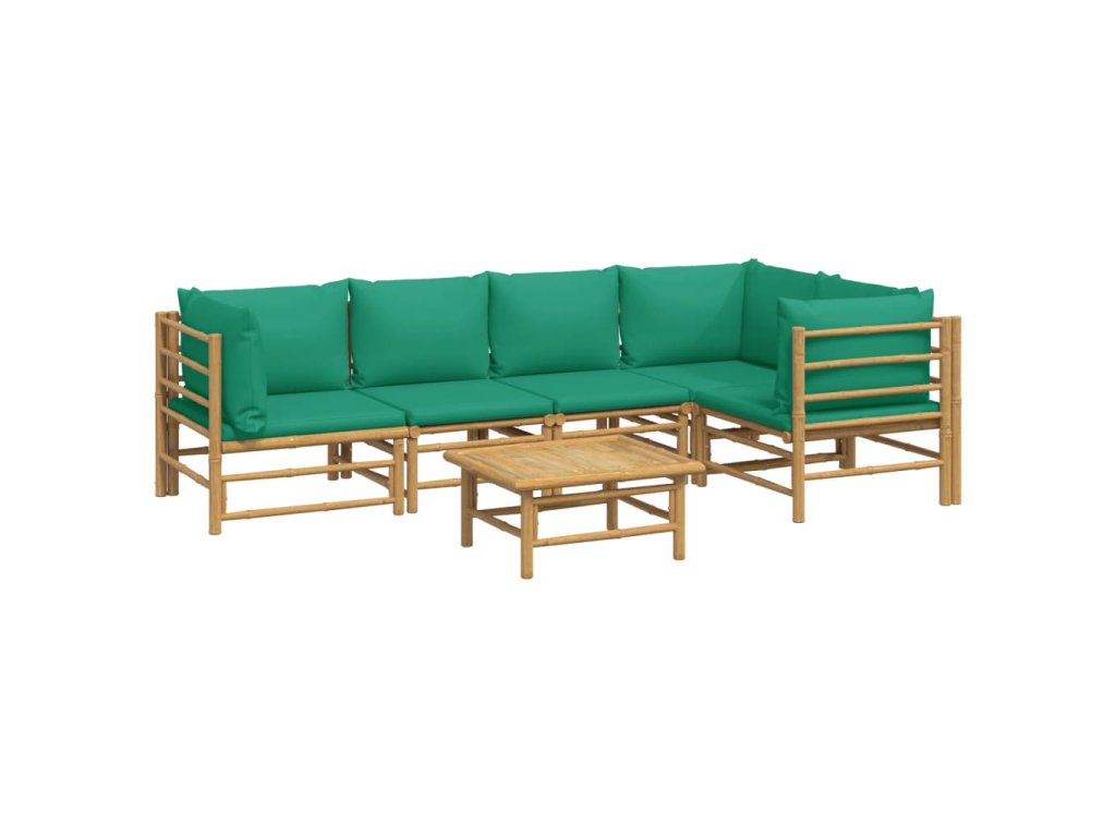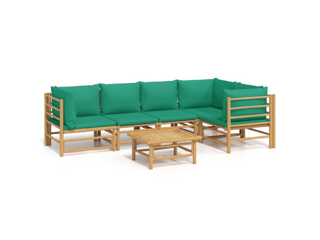6dílná zahradní sedací souprava se zelenými poduškami bambus