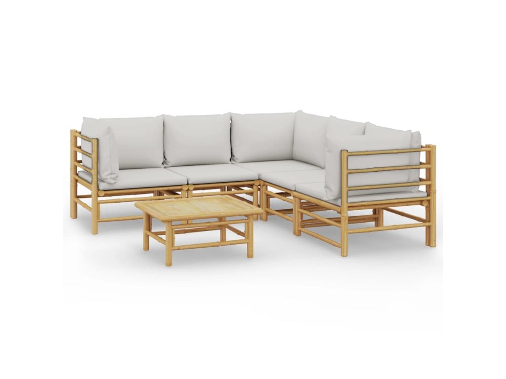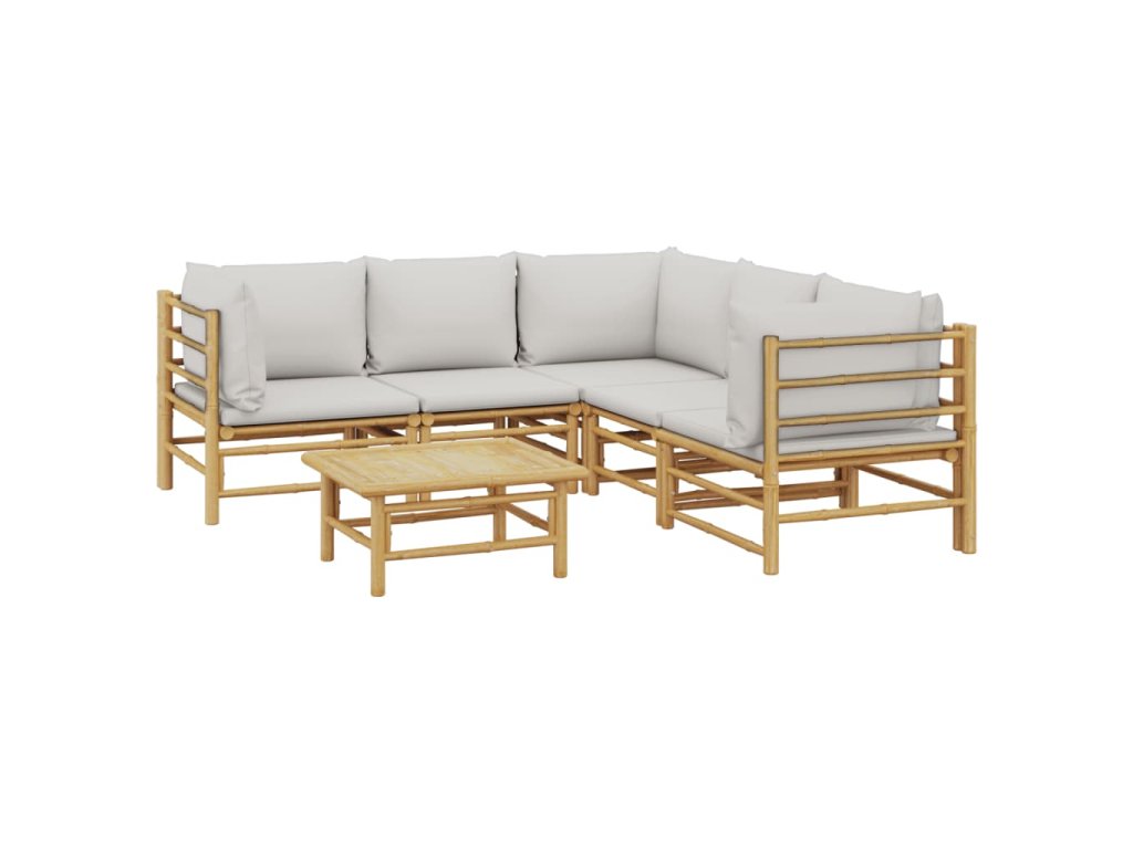 6dílná zahradní sedací souprava světle šedé podušky bambus