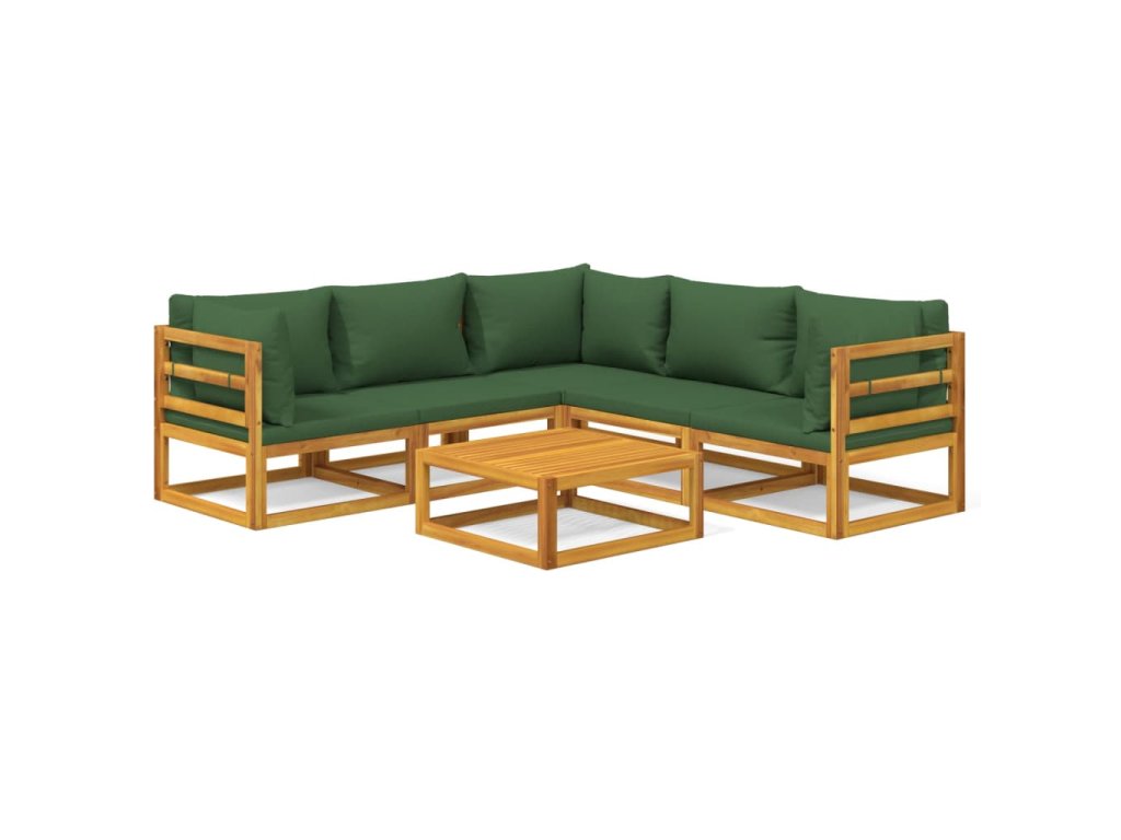 6dílná zahradní sedací souprava zelené podušky masivní dřevo