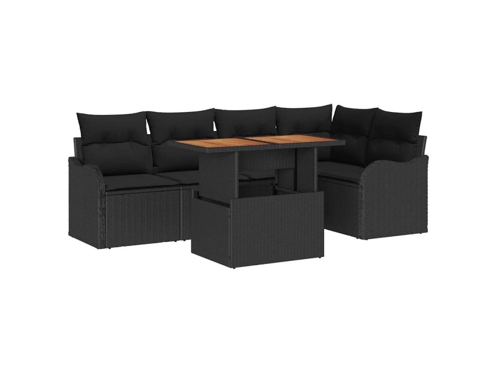 Sada zahradních pohovek s úložištěm 6 pcs Černá Poly ratan