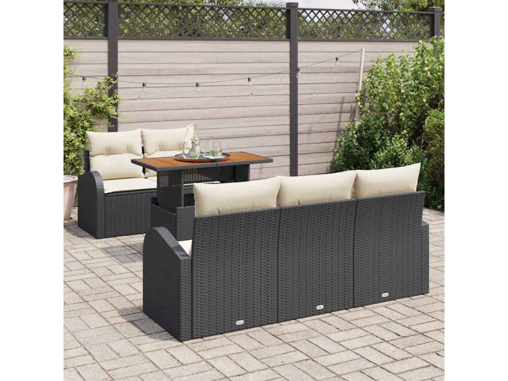 Sada zahradních pohovek s úložištěm 6 pcs Černá Poly ratan