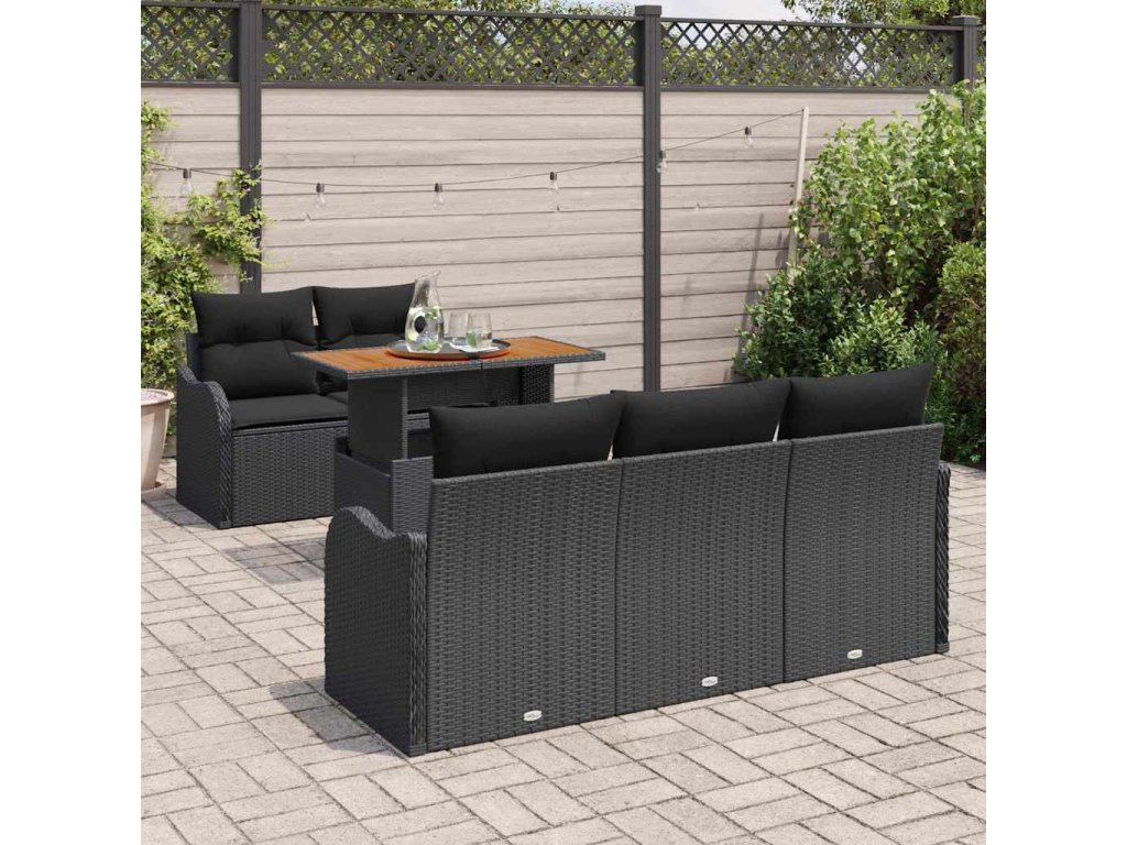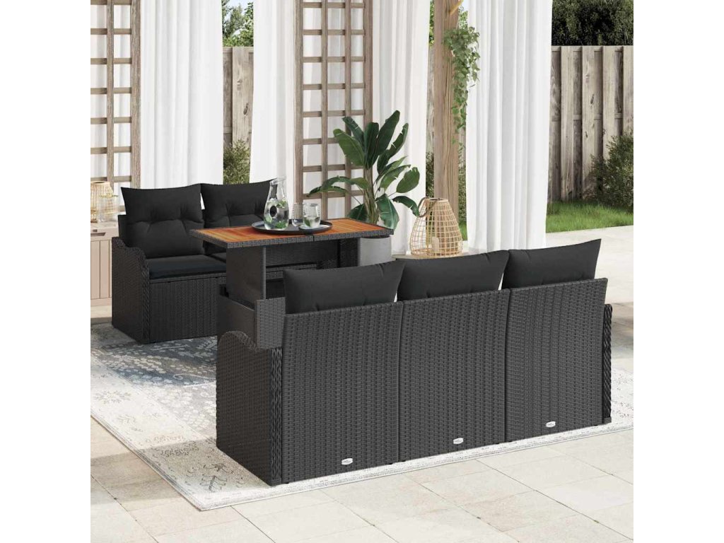 Sada zahradních pohovek s úložištěm 6 pcs Černá Poly ratan
