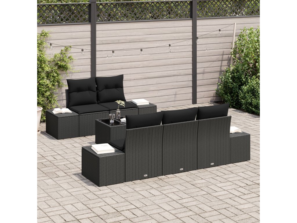 Sada zahradních pohovek s polštářem 6 pcs Černá polyratan