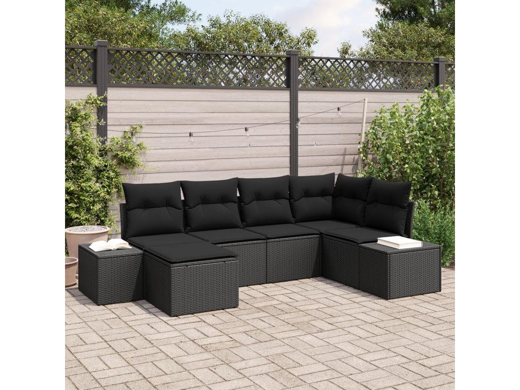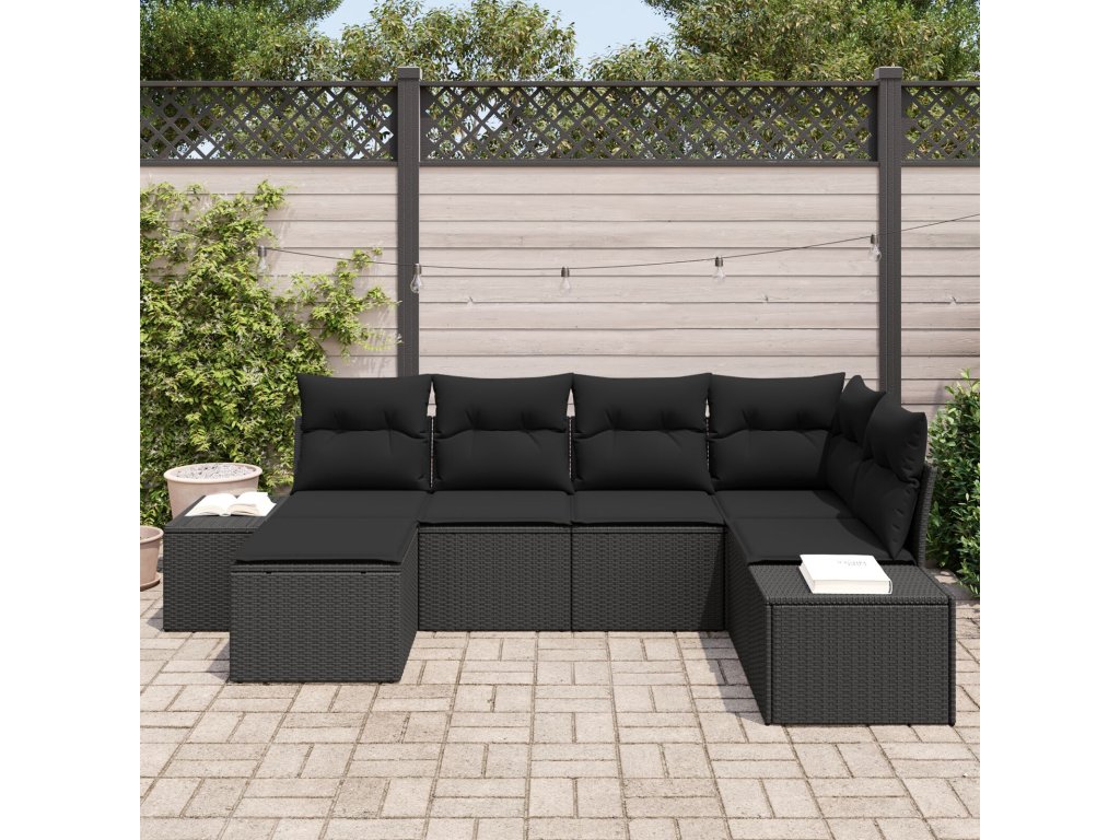 Sada zahradních pohovek s polštářem 6 pcs Černá polyratan