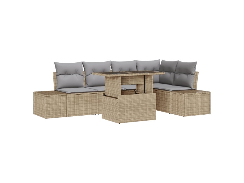 Sada zahradních pohovek s polštářem 6 pcs Béžová Poly ratan