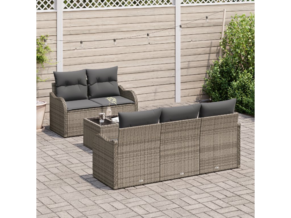Sada zahradních pohovek 6 pcs Šedá Polyratan a ocel a sklo