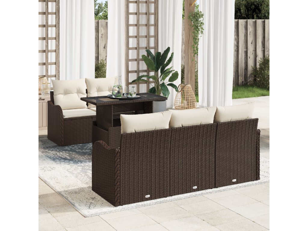 Sada zahradních pohovek s polštářem 6 pcs Hnědá polyratan