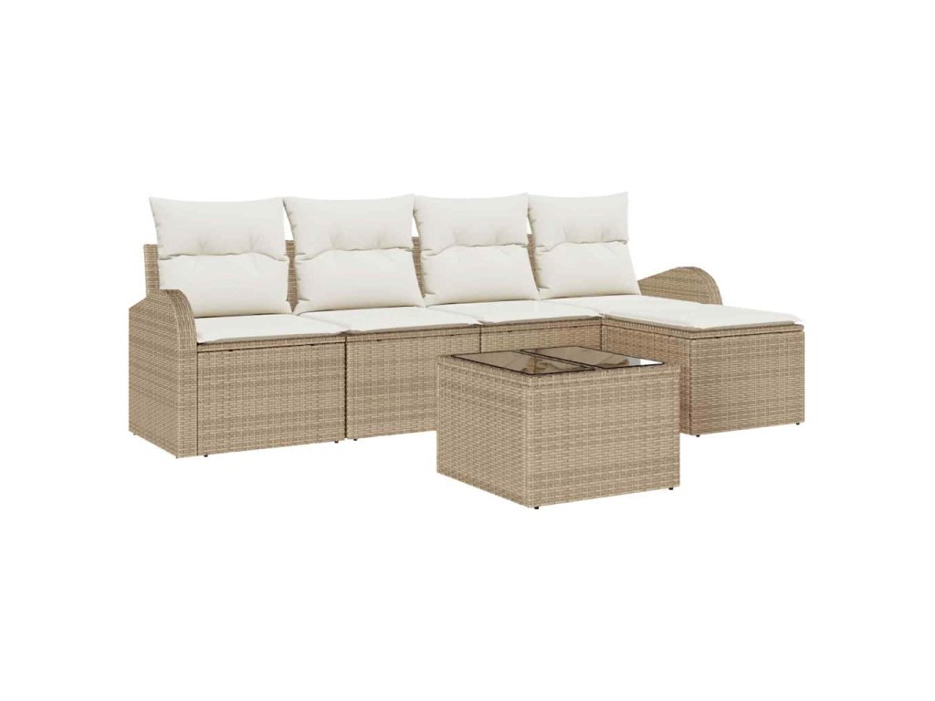 Set pohovek s polštářem 6 pcs Béžová a bílá polyratan