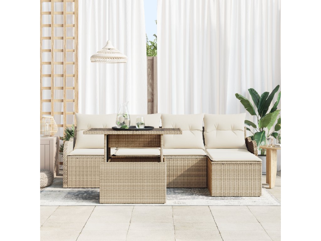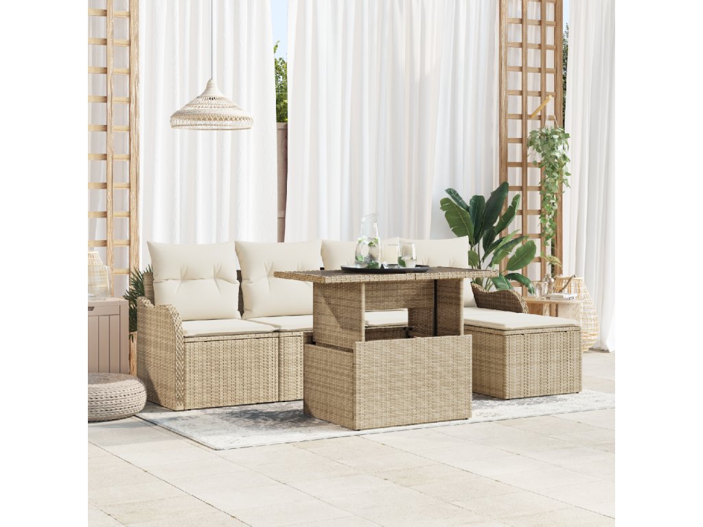 Sada zahradních pohovek s polštářem 6 pcs Béžová Poly ratan