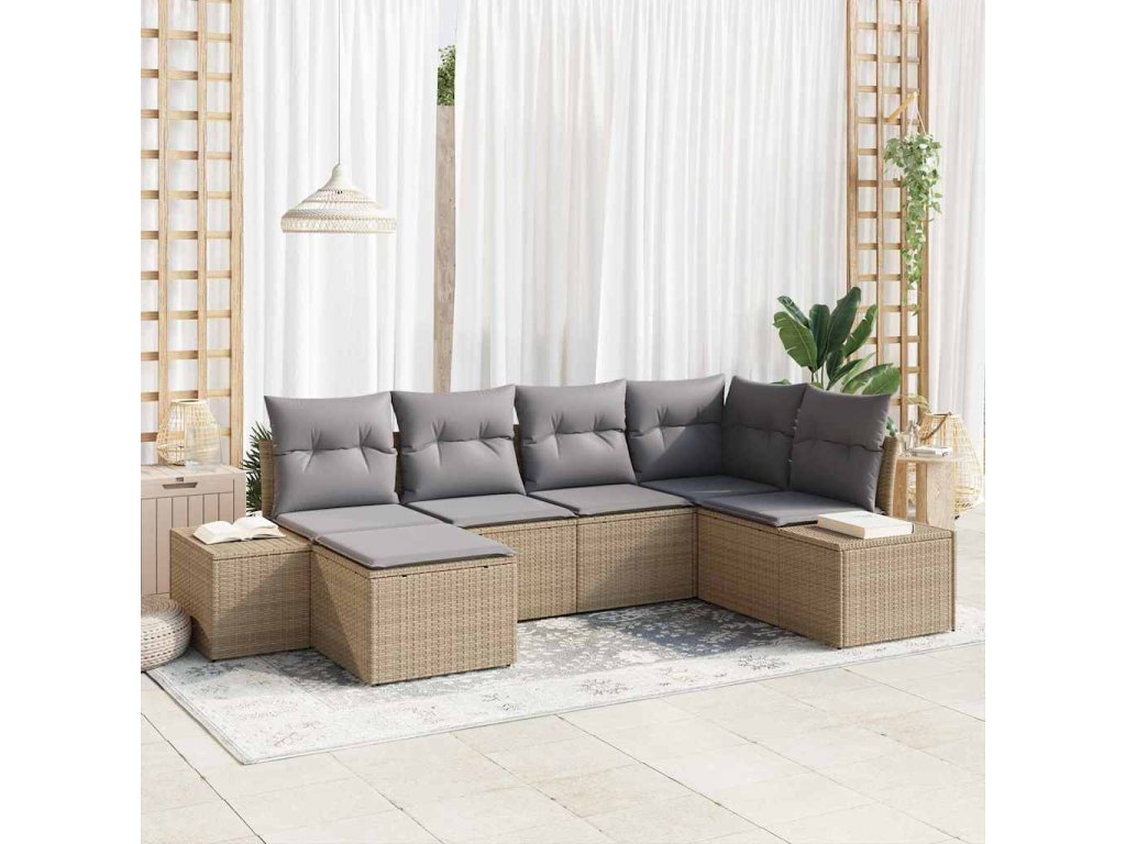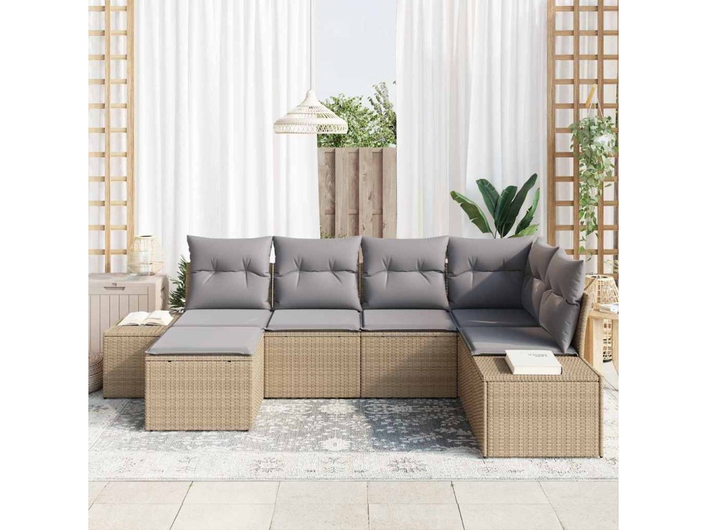 Sada zahradních pohovek 6 pcs Béžová a Světle šedá polyratan