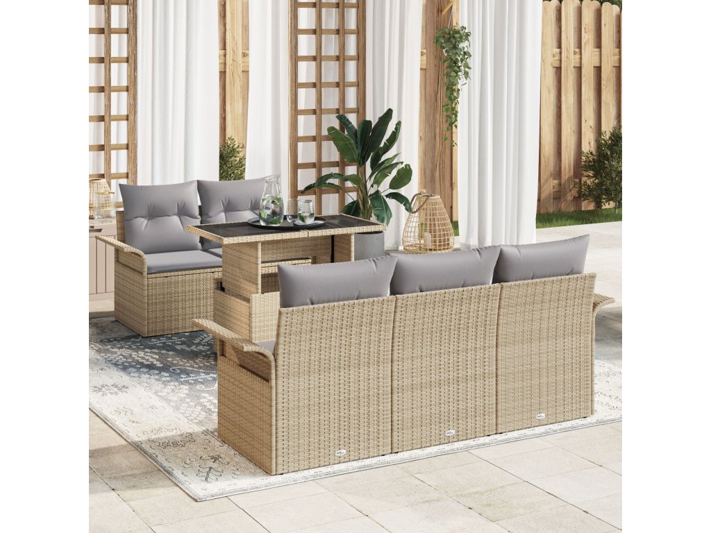 Sada zahradních pohovek s polštářem 6 pcs Béžová polyratan
