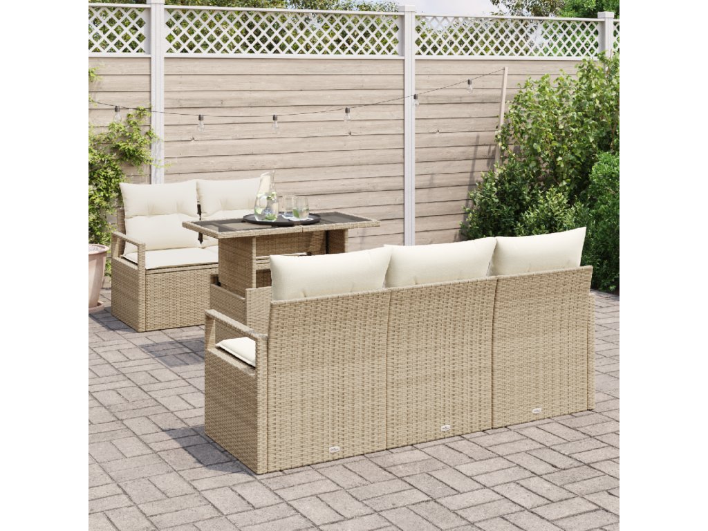 Set pohovek s polštářem 6 pcs béžová a krémová polyratan