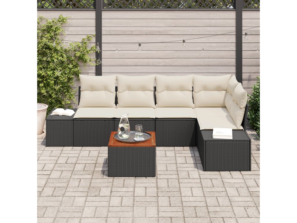 Sada zahradních pohovek s polštářem 6 pcs Černá Poly ratan