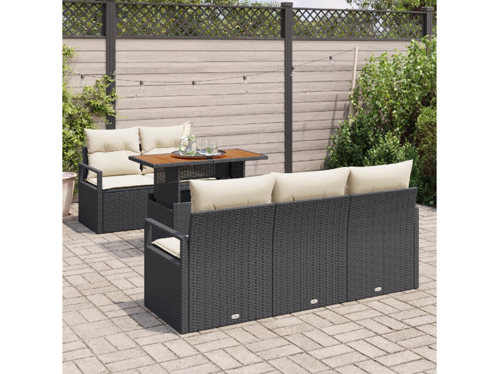 Sada zahradních pohovek s polštářem 6 pcs Černá a krémová