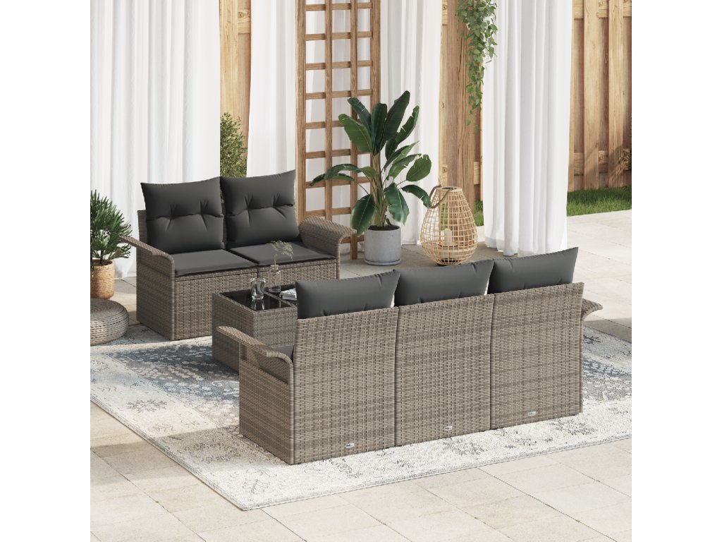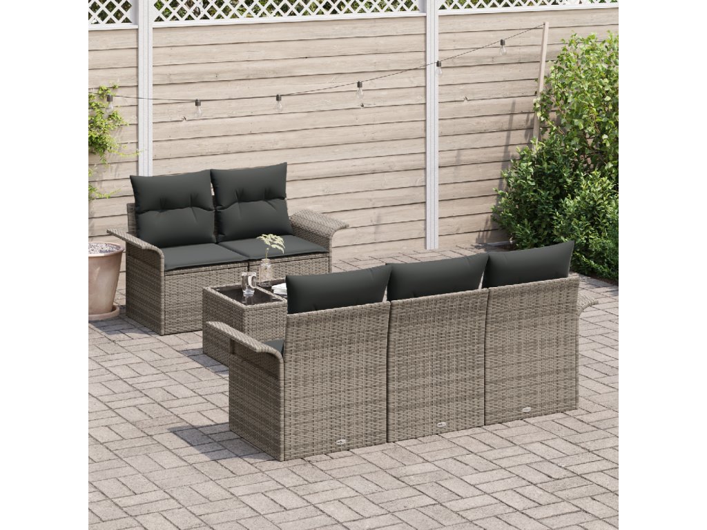 Sada zahradních pohovek 6 pcs Šedá Polyratan a ocel a sklo