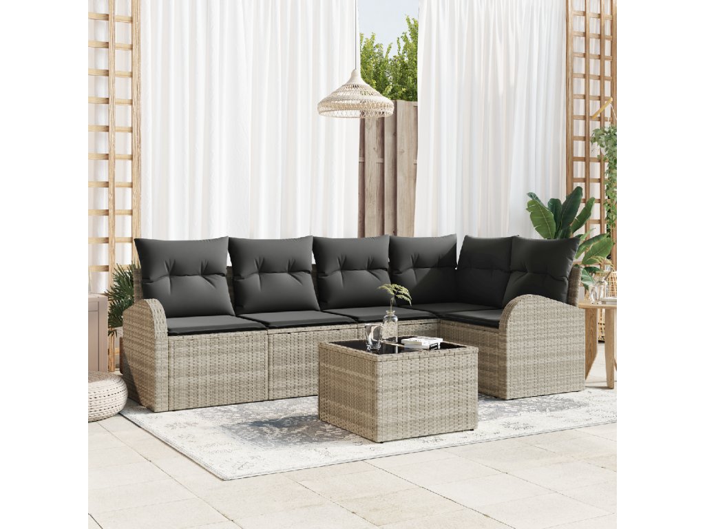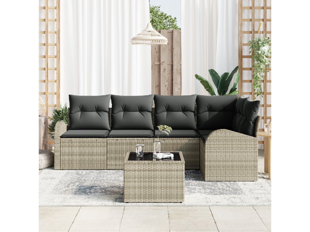 Set pohovek s polštářem s úložištěm 6 pcs Světle šedá polyratan