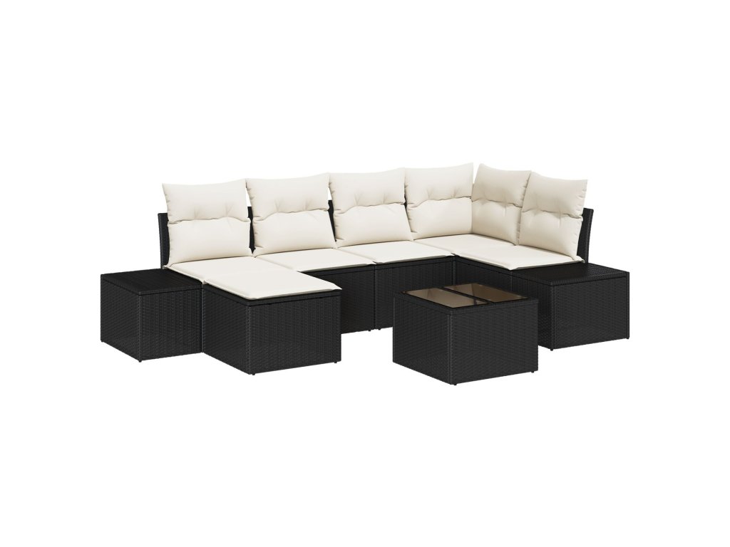 Sada zahradních pohovek 7 pcs Černá a krémová Poly ratan