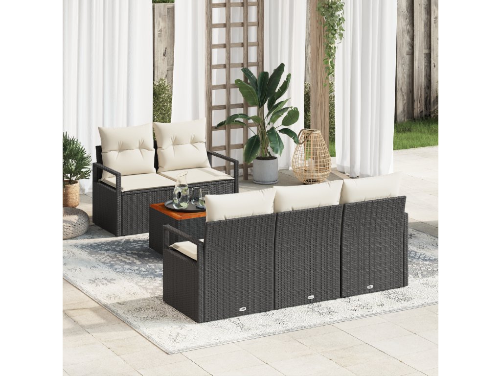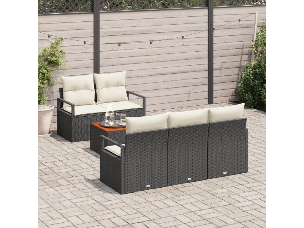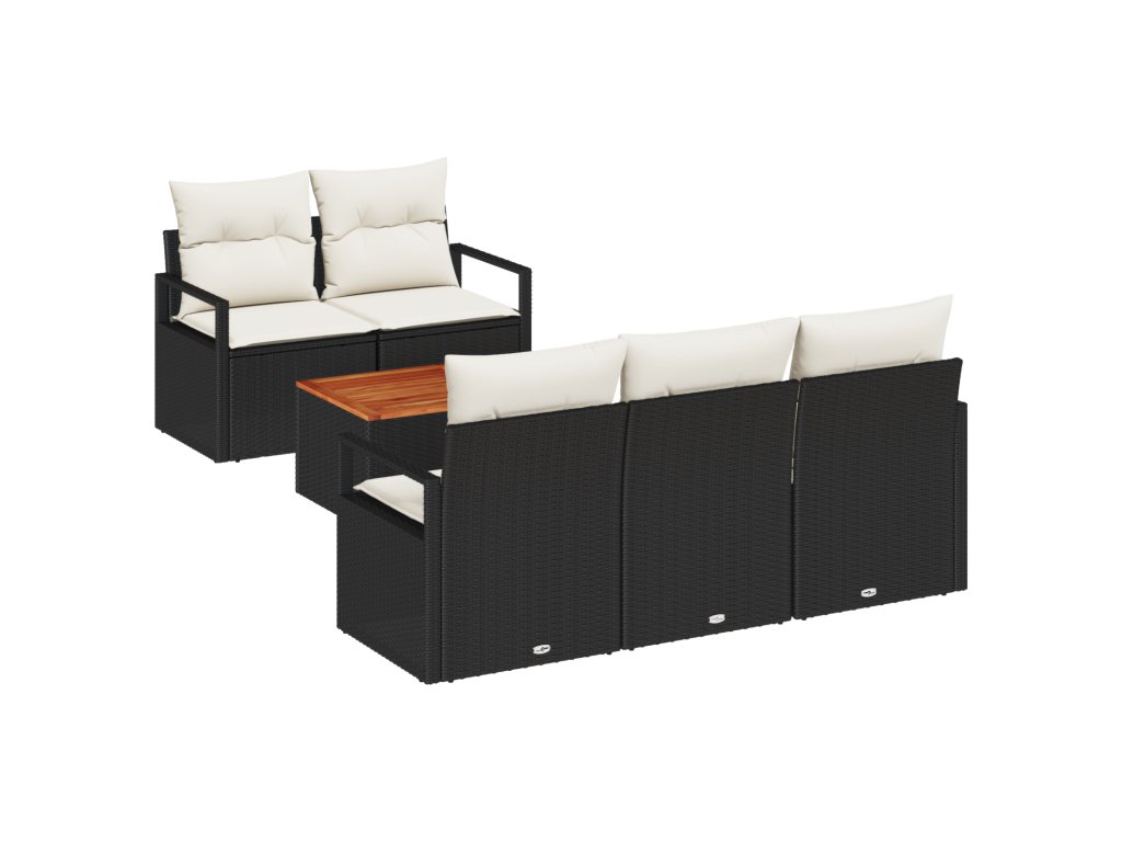 Sada zahradních pohovek s polštářem 6 pcs Černá Poly ratan