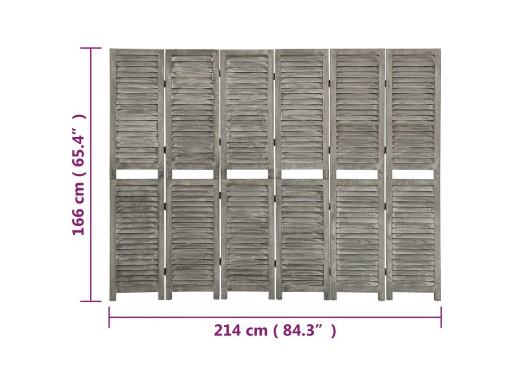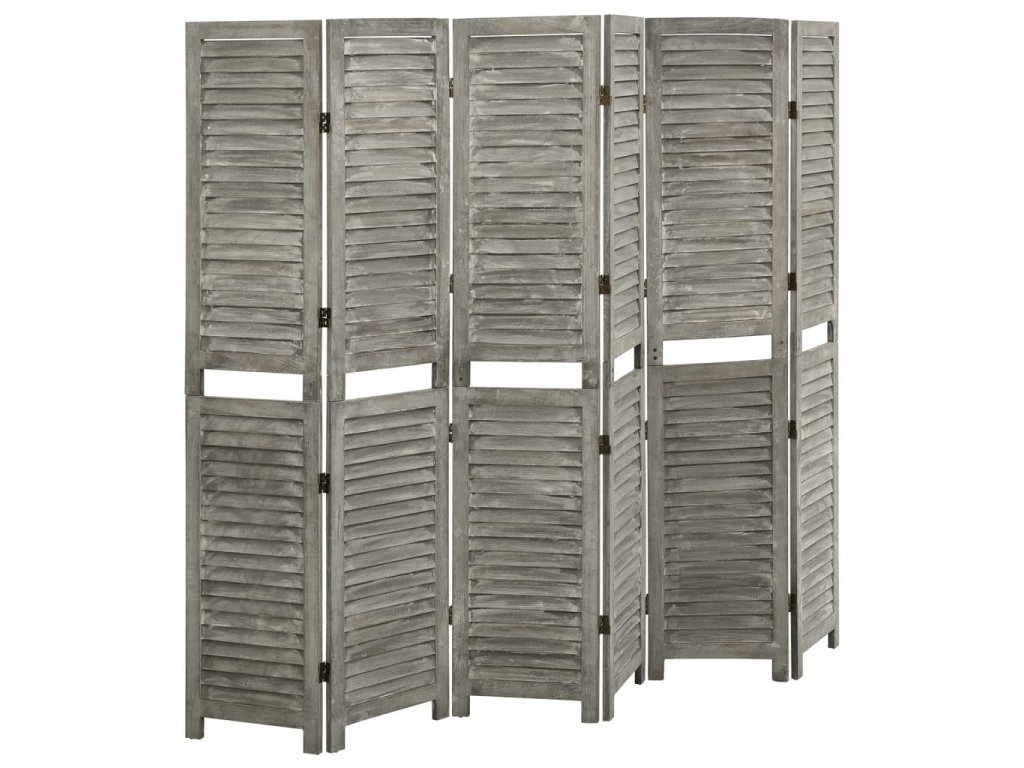 6dílný paraván šedý 214 x 166 cm masivní dřevo