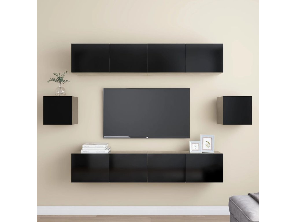 6dílný set TV skříněk černý kompozitní dřevo