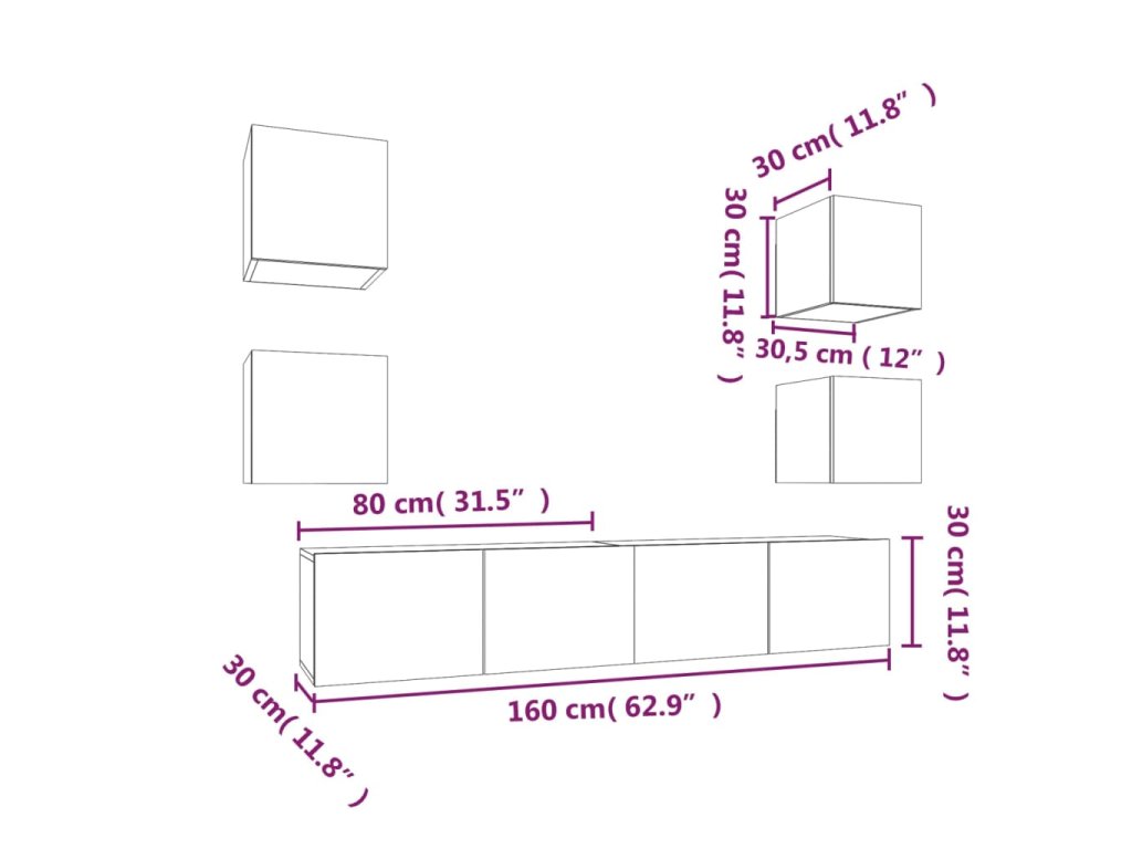 - 4x TV skříňka: 30,5 x 30 x 30 cm (Š x H x V)