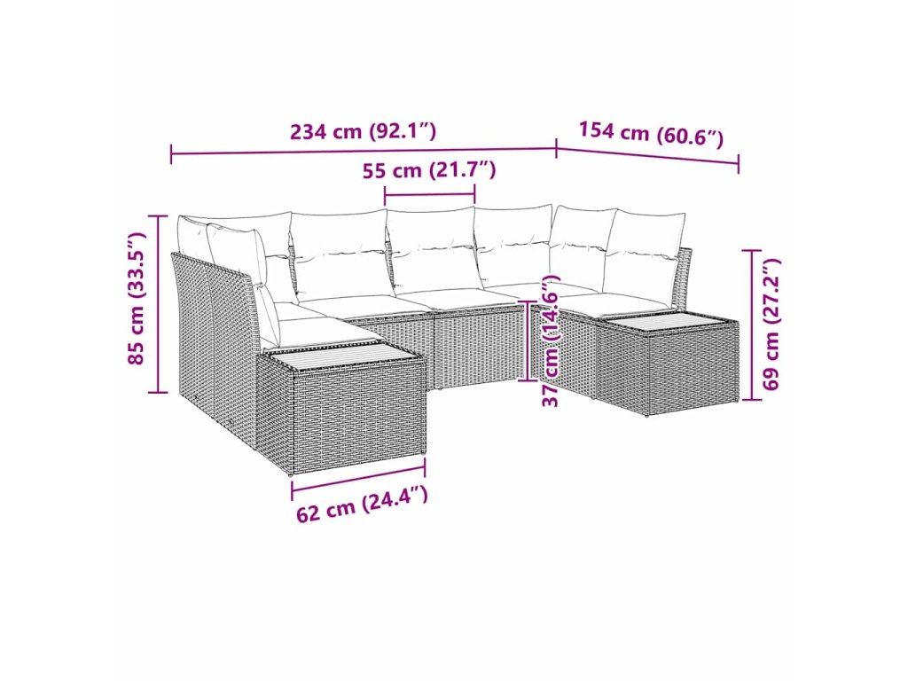 - Materiál Poly Ratan: Celý set je z poly ratanu, který skvěle vypadá a zvládá venkovní opotřebení. Je odolný vůči UV záření, takže zůstává jasný a nevybledne ani po několika sezonách.