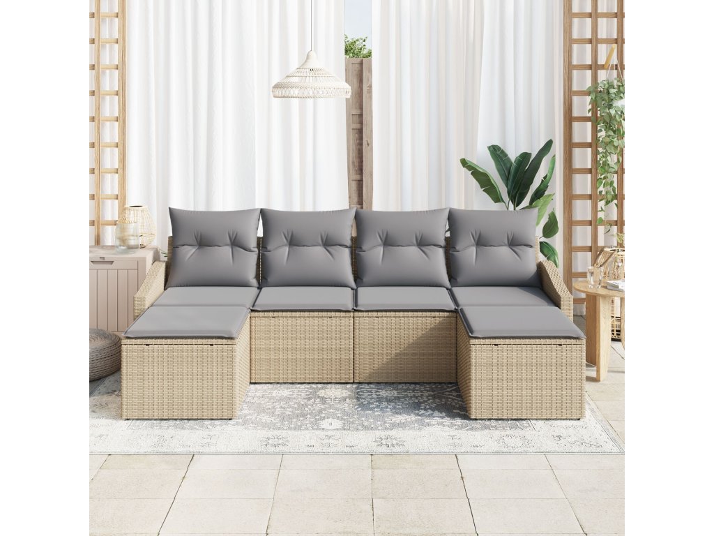Set pohovek s polštářem 6 pcs Béžová polyratan