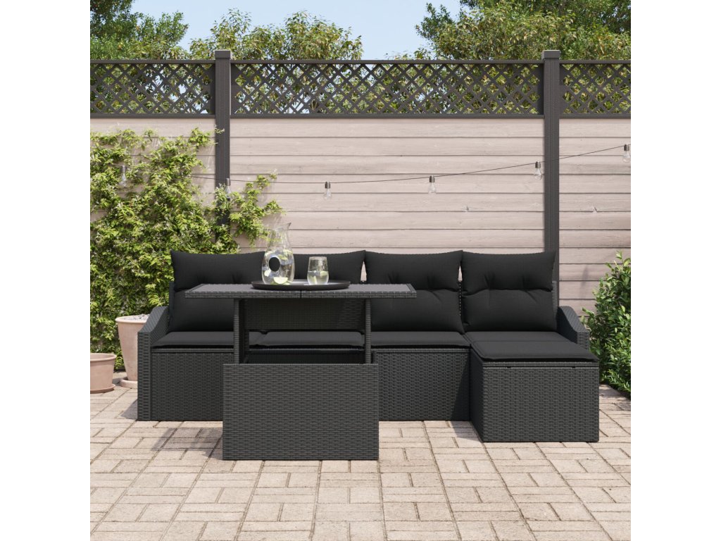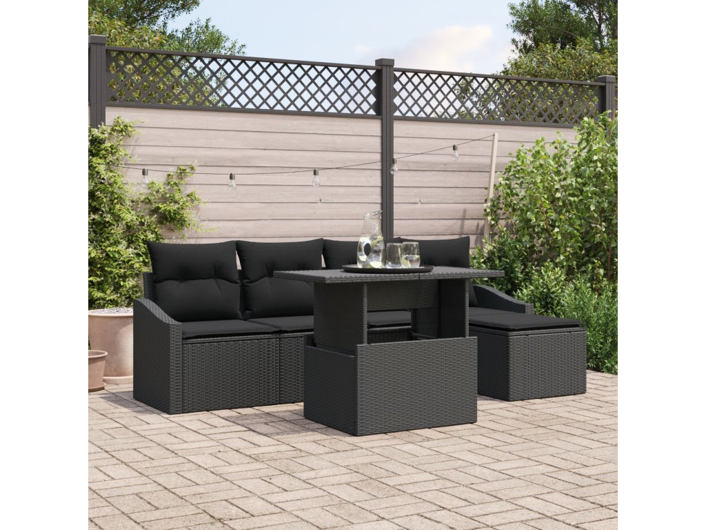 Sada zahradních pohovek s polštářem 6 pcs Černá