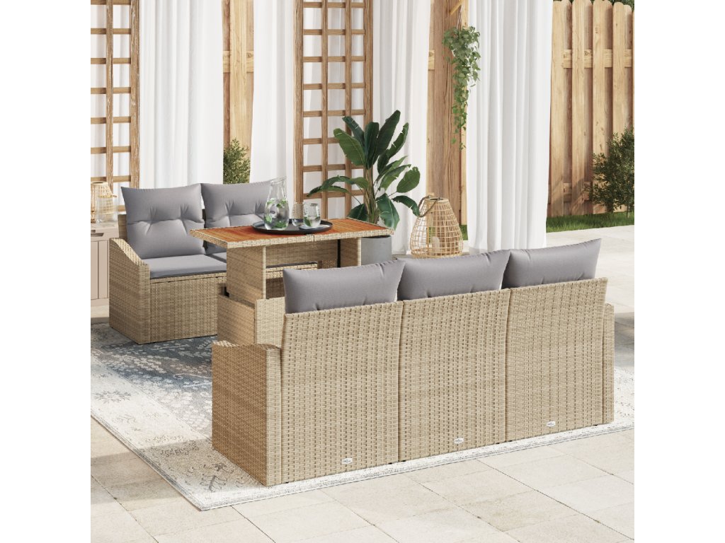 Odolné materiály: Vyrobeno z UV-odolného poly ratanu a odolné práškově lakované oceli, tato sada odolává povětrnostním vlivům. Pevné akáciové dřevěné stolové desky přidávají dotek přirozené elegance a chrání proti deformaci nebo poškození slunečním zářením. To zajišťuje dlouhotrvající používání, takže si můžete s přáteli a rodinou bez obav vychutnávat jídlo i v nečekaném počasí. Ergonomický design: Navrženo pro pohodlí a styl, tato sada zahrnuje měkké polyesterové polštáře a sedadla s pěnovým polstrováním, která podporují uvolněné stravování. S opěrkou a hranatými opěrkami rukou z poly ratanu slibuje zvýšenou relaxaci. Dokončený zadek zajišťuje 360-stupňovou vizuální přitažlivost, což dělá každou útulnou rohovou část působivou. Funkční univerzálnost: Vyjděte vstříc modularitě, která vám umožňuje uspořádat sezení podle jakékoli příležitosti. S nastavitelnými nožičkami zůstává tato jídelní souprava stabilní na nerovných plochách, čímž zvyšuje její použitelnost pro jakýkoli venkovní prostor. Ruční, výškově nastavitelná funkce přivede každou část vaší zahrady na dosah, zosobňuje flexibilitu v designu nábytku. Praktické úložiště: Integrované úložiště v sedacích jednotkách umožňuje bezpečné a suché uskladnění venkovních nezbytností. S polštáři se zipem zajišťujícími snadné odstranění a čištění zůstává váš prostor bez nepořádku. Uložte nesezené dekorativní polštáře nebo mějte venkovní hry dostupné mezi akcemi a optimalizujte funkční prostor. Snadná údržba: Chraňte své jídelní poklady použitím krytu, když se sada nepoužívá, abyste ji ochránili před povětrnostními vlivy. Tato metoda péče udržuje estetiku a prodlužuje trvanlivost materiálů, což dělá váš venkovní útočiště vyhledávaným místem v každé sezóně.- Barva: Beige a šedá