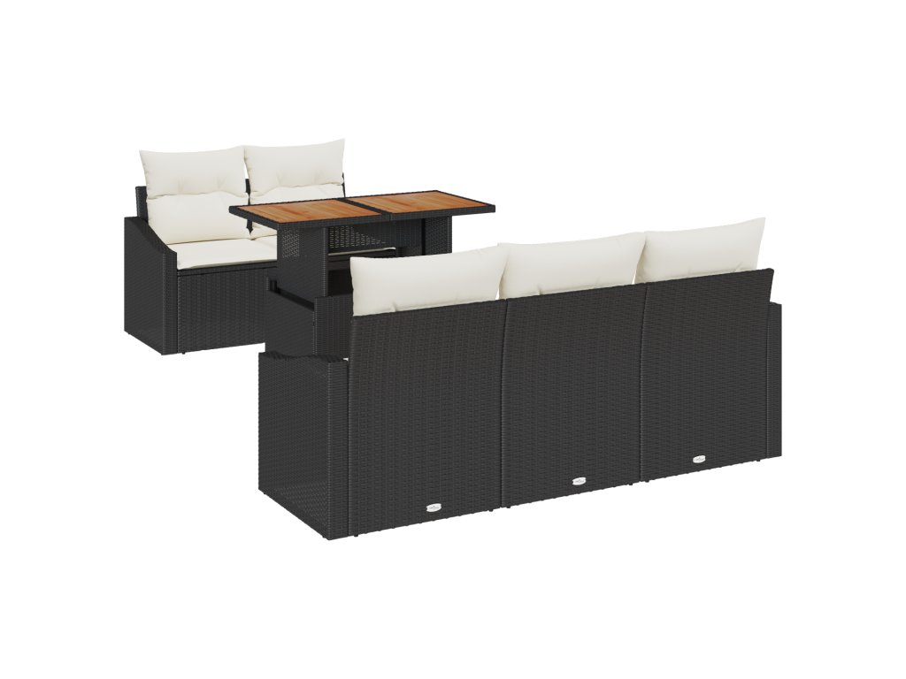 Odolné materiály: Vyrobeno z UV-odolného poly ratanu a odolné práškově lakované oceli, tato sada odolává povětrnostním vlivům. Pevné akáciové dřevěné stolové desky přidávají dotek přirozené elegance a chrání proti deformaci nebo poškození slunečním zářením. To zajišťuje dlouhotrvající používání, takže si můžete s přáteli a rodinou bez obav vychutnávat jídlo i v nečekaném počasí. Ergonomický design: Navrženo pro pohodlí a styl, tato sada zahrnuje měkké polyesterové polštáře a sedadla s pěnovým polstrováním, která podporují uvolněné stravování. S opěrkou a hranatými opěrkami rukou z poly ratanu slibuje zvýšenou relaxaci. Dokončený zadek zajišťuje 360-stupňovou vizuální přitažlivost, což dělá každou útulnou rohovou část působivou. Funkční univerzálnost: Vyjděte vstříc modularitě, která vám umožňuje uspořádat sezení podle jakékoli příležitosti. S nastavitelnými nožičkami zůstává tato jídelní souprava stabilní na nerovných plochách, čímž zvyšuje její použitelnost pro jakýkoli venkovní prostor. Ruční, výškově nastavitelná funkce přivede každou část vaší zahrady na dosah, zosobňuje flexibilitu v designu nábytku. Praktické úložiště: Integrované úložiště v sedacích jednotkách umožňuje bezpečné a suché uskladnění venkovních nezbytností. S polštáři se zipem zajišťujícími snadné odstranění a čištění zůstává váš prostor bez nepořádku. Uložte nesezené dekorativní polštáře nebo mějte venkovní hry dostupné mezi akcemi a optimalizujte funkční prostor. Snadná údržba: Chraňte své jídelní poklady použitím krytu, když se sada nepoužívá, abyste ji ochránili před povětrnostními vlivy. Tato metoda péče udržuje estetiku a prodlužuje trvanlivost materiálů, což dělá váš venkovní útočiště vyhledávaným místem v každé sezóně.- Barva: Černá a krémová