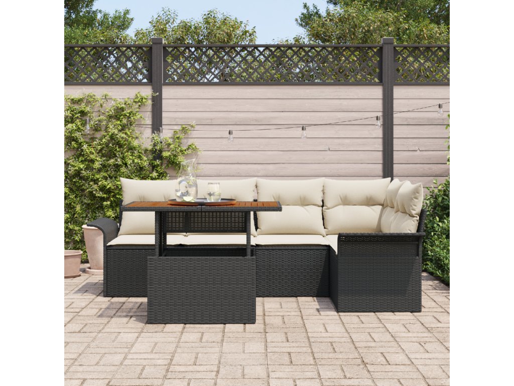 Sada zahradních pohovek s polštářem 6 pcs Černá a krémová