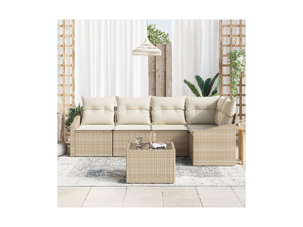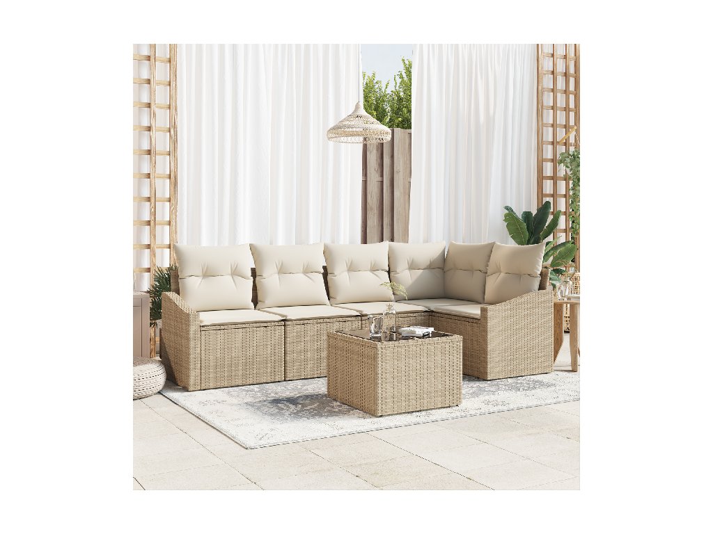 Set pohovek s polštářem 6 pcs Béžová a krémová polyratan