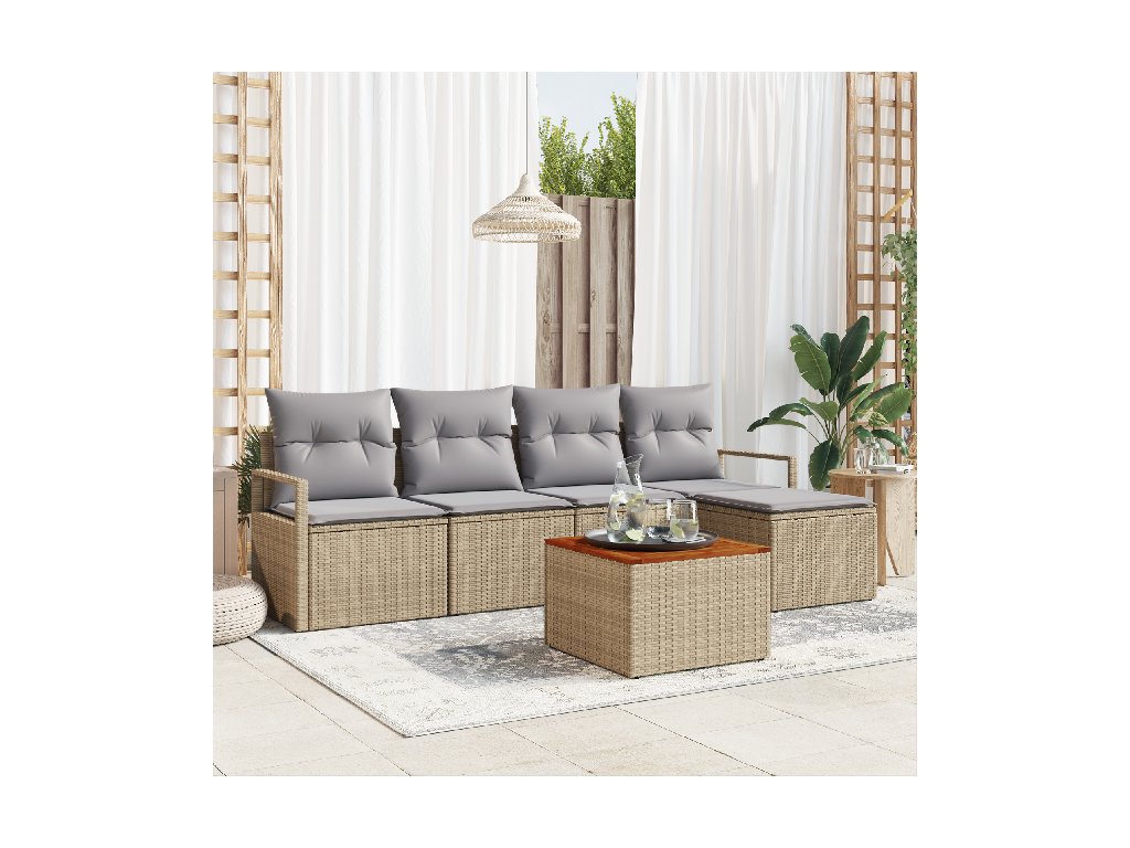 Sada zahradních pohovek s polštářem 6 pcs Béžová Poly ratan