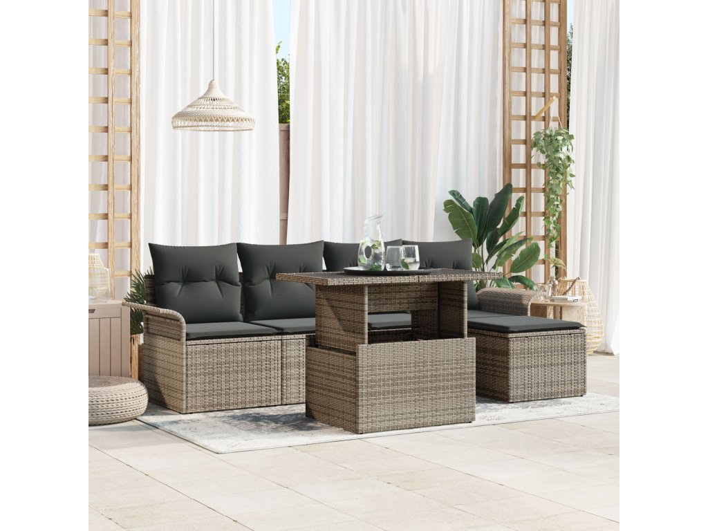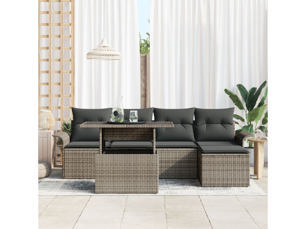 Odolné materiály Vyrobeno z pevného poly ratanu a akáciového dřeva, souprava nabízí styl a odolnost. Poly ratan vydrží počasí a UV záření, takže vypadá skvěle sezónu co sezónu, zatímco akáciové dřevo přidává stabilitu. Zahrnuté komponenty Tato souprava zahrnuje pohodlné sedací podložky a polštáře a poly ratanové zázemí pro elegantní vzhled. Každý detail je navržen tak, aby vylepšil tvůj zážitek a spojil praktickou funkci s moderním stylem. Funkční design Výškově nastavitelný stůl se snadno mění z úrovně kávového stolku na jídelní stůl, přizpůsobuje se tvým potřebám. Lehká, ale robustní konstrukce umožňuje snadné přeskupení pro různé příležitosti. Doporučené použití Tato souprava je ideální pro zahrady nebo terasy, skvělá pro shromáždění i relaxaci. Přináší hvězdný prostor pro sociální akce nebo klidné chvíle s přírodou. Jednoduchá údržba Chcete-li udržet soupravu jako novou, používej kryt, když ji nepotřebuješ. Sestavení je jednoduché, stačí dvě osoby a šroubovák, což ti šetří čas na užívání.- Barva: Šedá