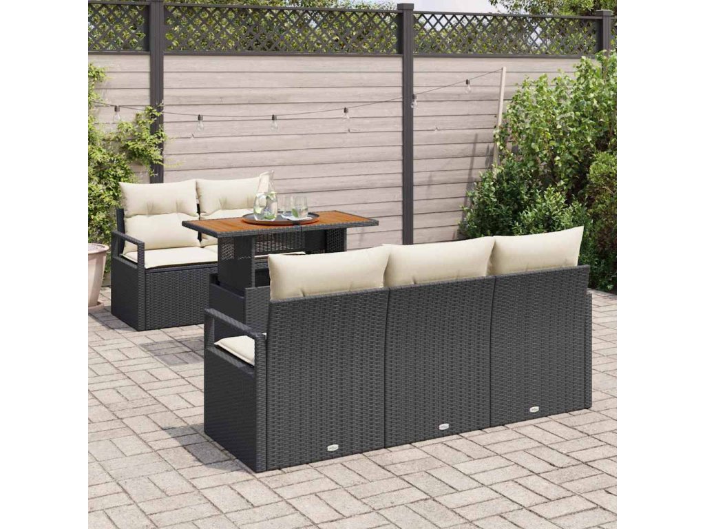 Sada zahradních pohovek s úložištěm 6 pcs Černá Poly ratan