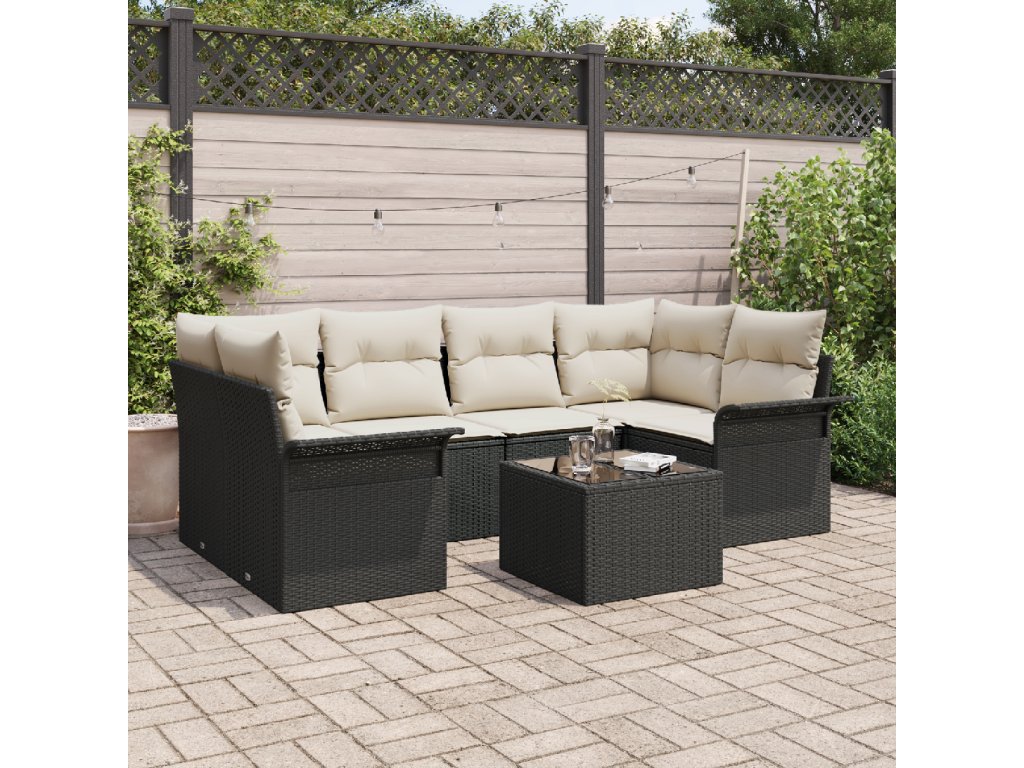 Sada zahradních pohovek s polštářem 7 pcs Černá a krémová