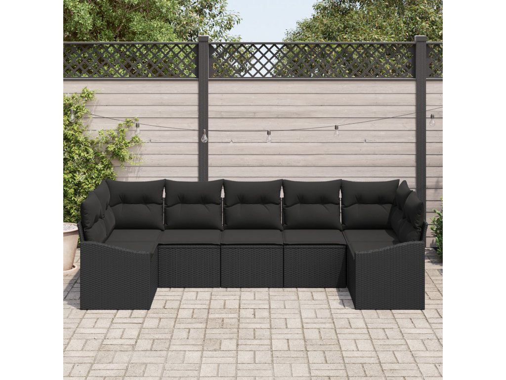 Set pohovek s polštářem 7 pcs Černá polyratan