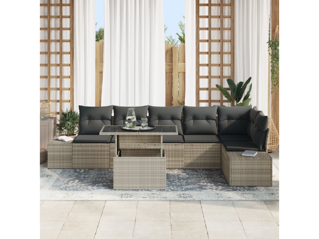 Sada zahradních pohovek s polštářem 7 pcs Světle šedá polyratan