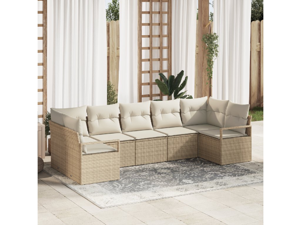 Sada zahradních pohovek 7 pcs Béžová Poly ratan