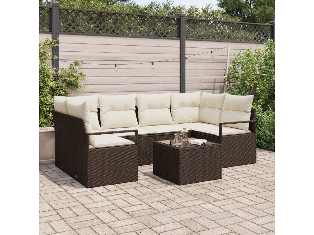 Set pohovek 7 pcs Hnědá a krémová polyratan